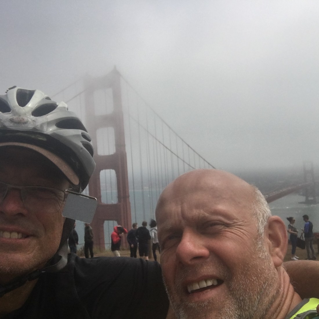When we got close to the Golden Gate Bridge, it became clear that it would be a foggy crossing. This is not dangerous, just not very memorable. I pointed out that they could get a better crossing by taking a ferry from Sausalito. For these two, the thought of not crossing the bridge was not to be considered.