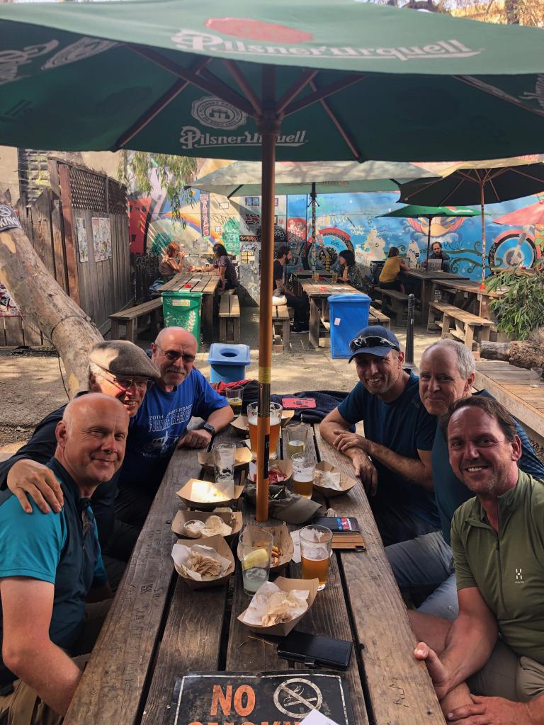 Beer at the Zeitgeist in San Fran. Clockwise from the lower left: Wouter, Tim, Chris Eisenbarth, Graham Pollock, Jim Kern, Hein