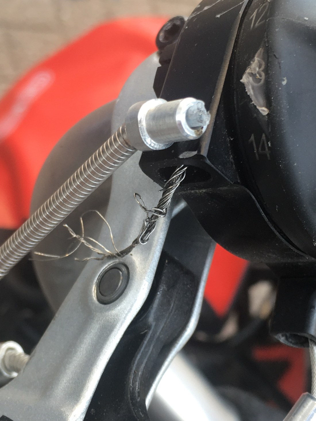 I booked a nearby hotel. I rode the bike for three miles to the hotel. Fortunately there was a bike shop close to the hotel. I spoke to the owner as he was closing up shop late Saturday afternoon. He did not have a mechanic on duty. But he gave me a shift cable and said the mechanic would be available on Monday morning.
