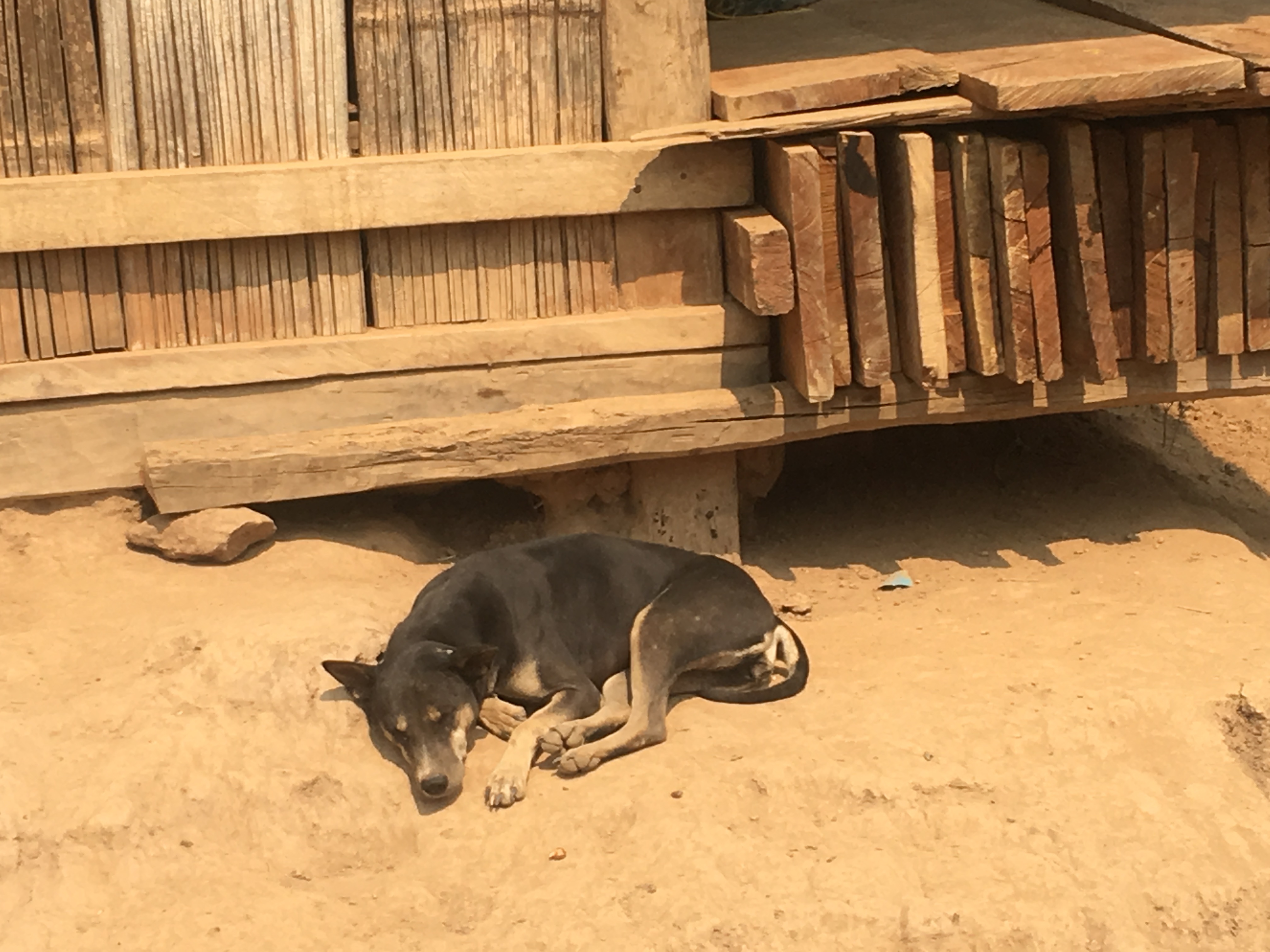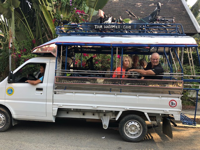 Joël found one person on the boat that spoke French. He knew this tiny village and the people in it. Joël and he disappeared on a motor bike. We waited. Joël returned about 30 minutes later with a truck that could take us all to our Long San.