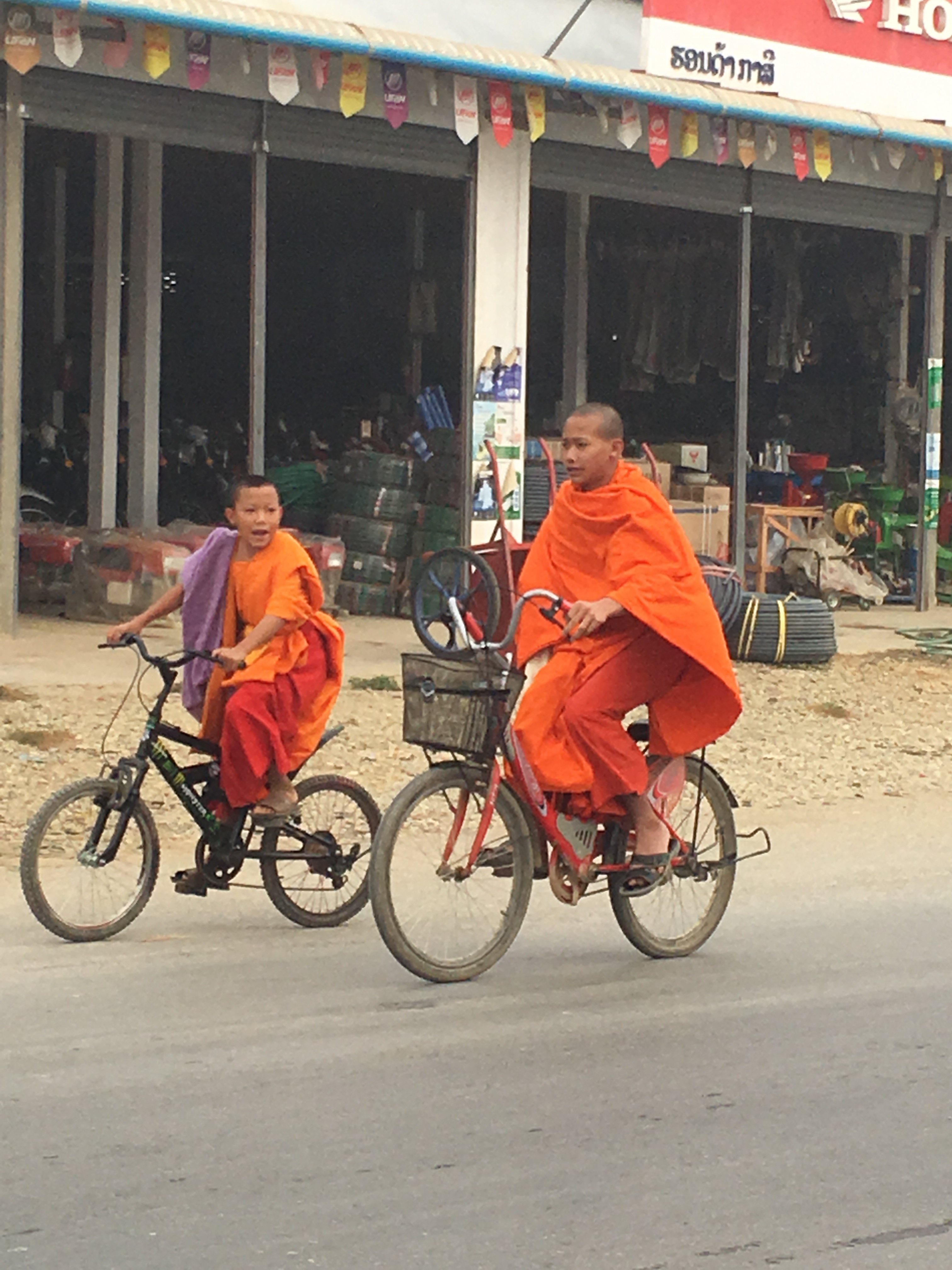 We stopped at a guest house recently. The shop keeper wrote out the price for the rooms in the dirt with his finger in the parking lot. We accepted and moved our many bags into the two rooms. Later I saw the shop keeper in the parking lot. I was unsure if Joël had paid for my room, or if I should pay directly. With a complete language barrier, I asked the shop keeper by pulling out a 100,000 kip note and offered it to the man. He simply shrugged his shoulders and refused to take the money, as if to say ‘buddy you don’t owe me anything’.
