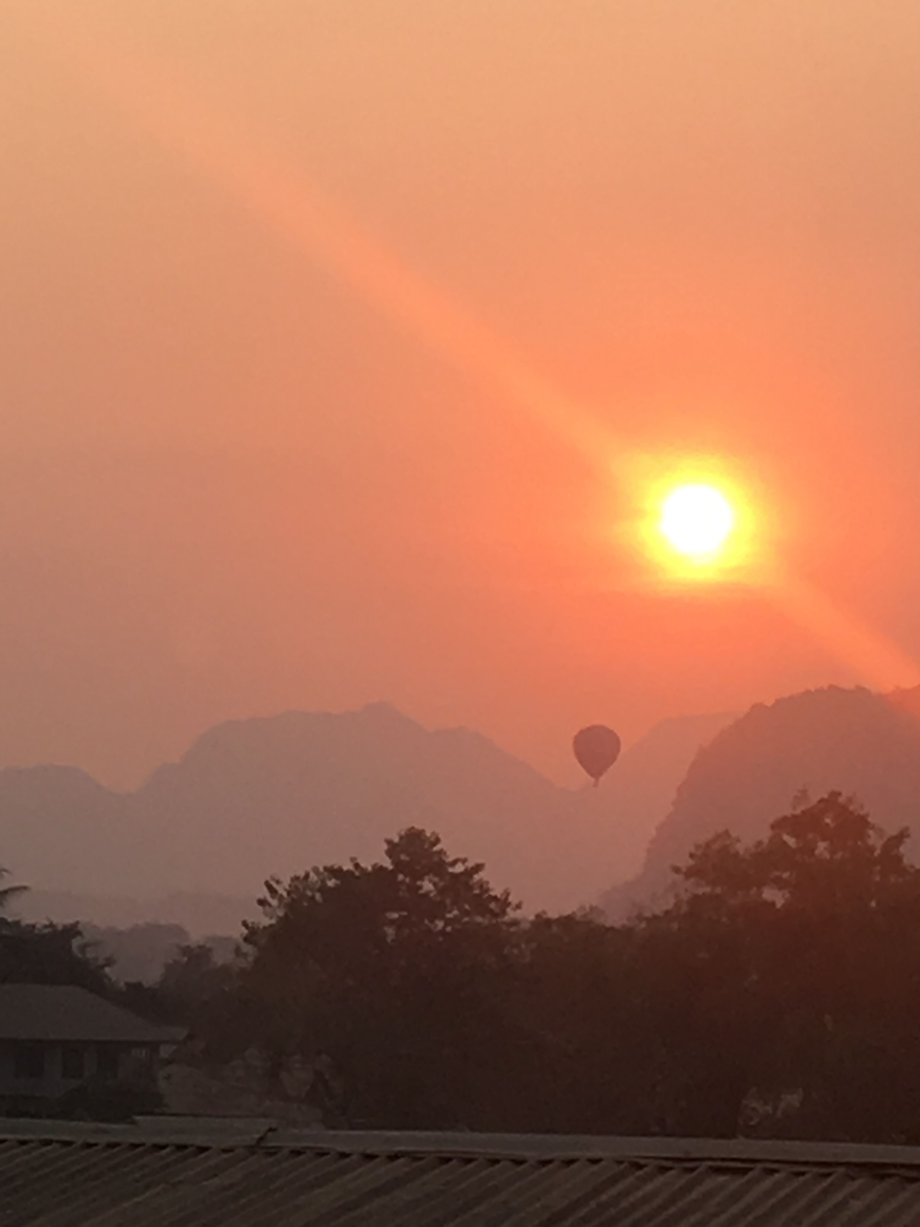 Some of the many hot air balloons that frequent the skies above Vieng Vang.