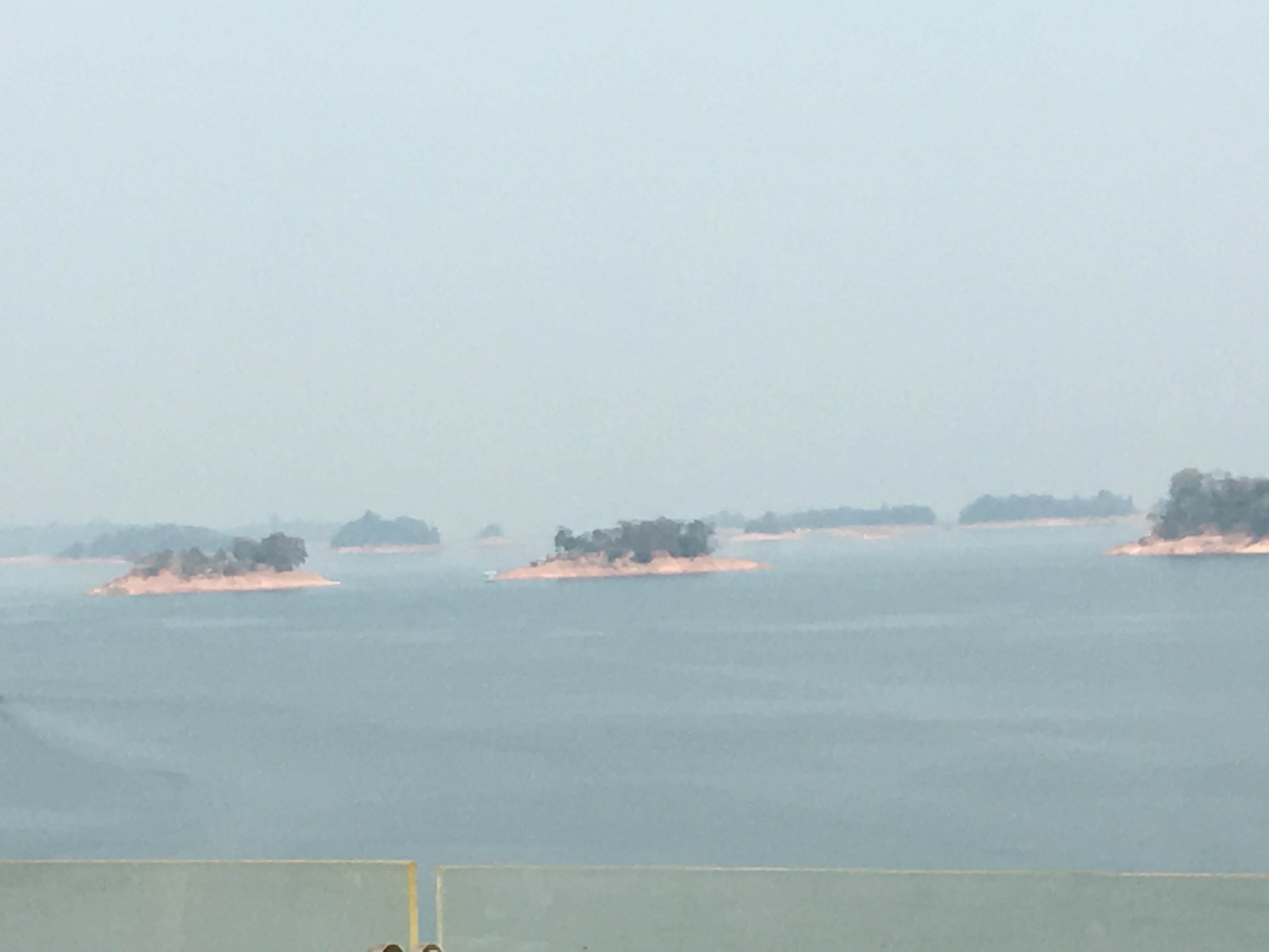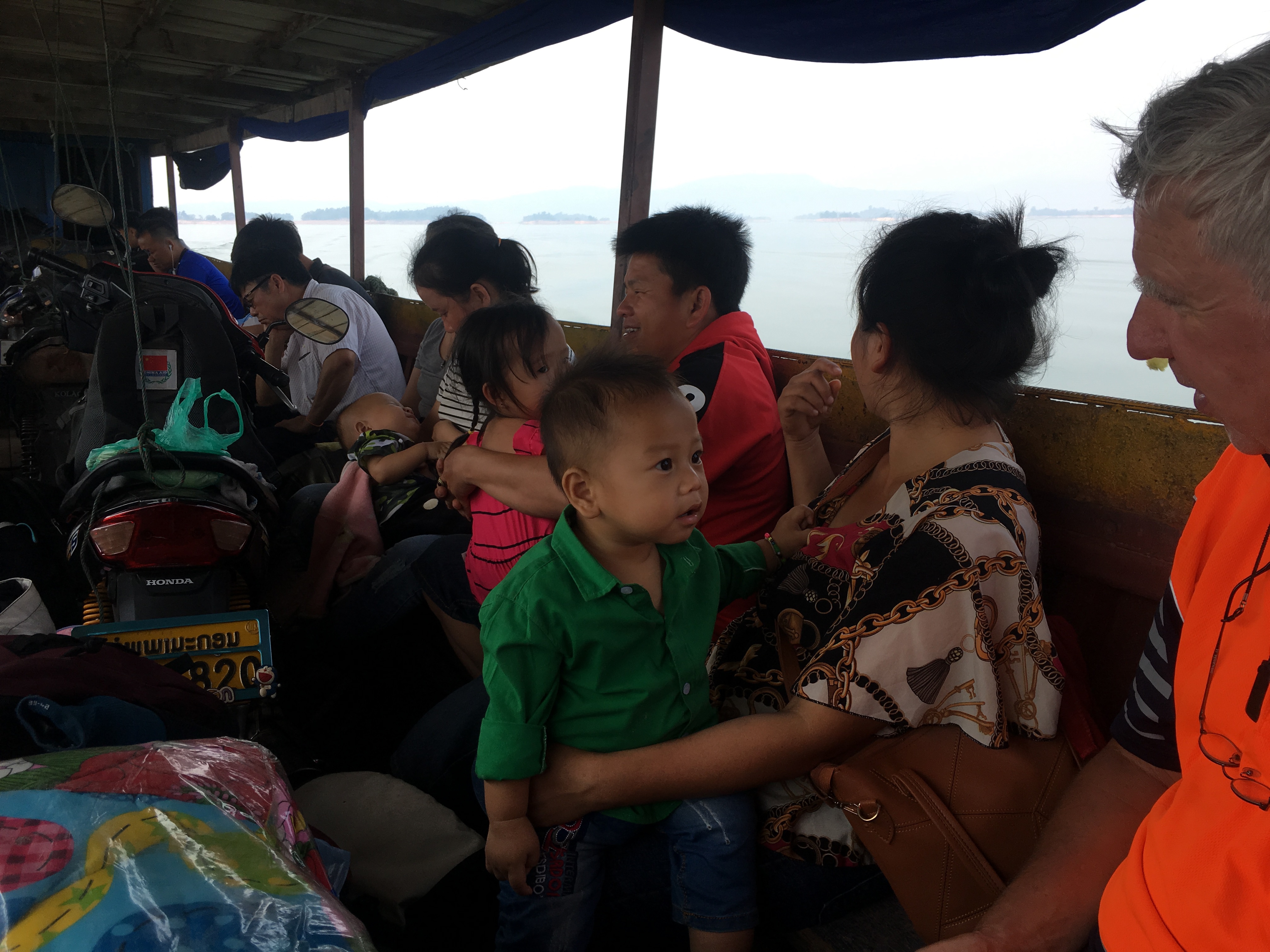 Nam Ngum Reservoir is formed by a large dam across the MeKong river. This is a large inland sea forty kilometers across. We stayed at classy resort on the west side. There we found a boat that would take us across to the other side of the lake. This was not a tour package boat. It was basic transportation for the locals and their chattels. A very different experience from our earlier river tour package.