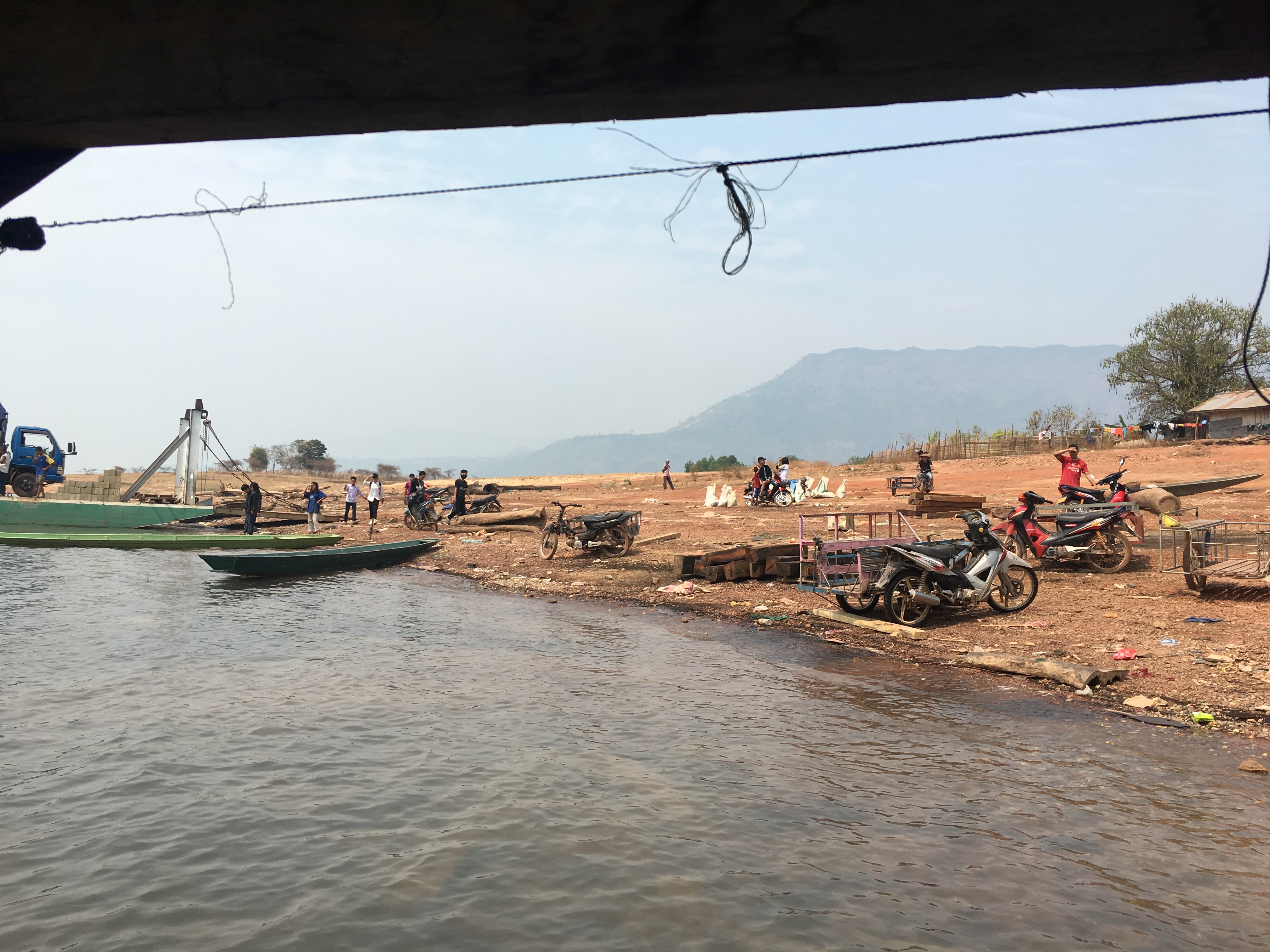 The boat arrived on the far shore. We had anticipated that it would dock close to the town of Long San. We were not even close. We were in a tiny village with 40km of mountainous road between us and our expected destination. We were under the false assumption that the boat would take us to the furthest point in the lake. Now we had to scramble for a solution late in the day.
